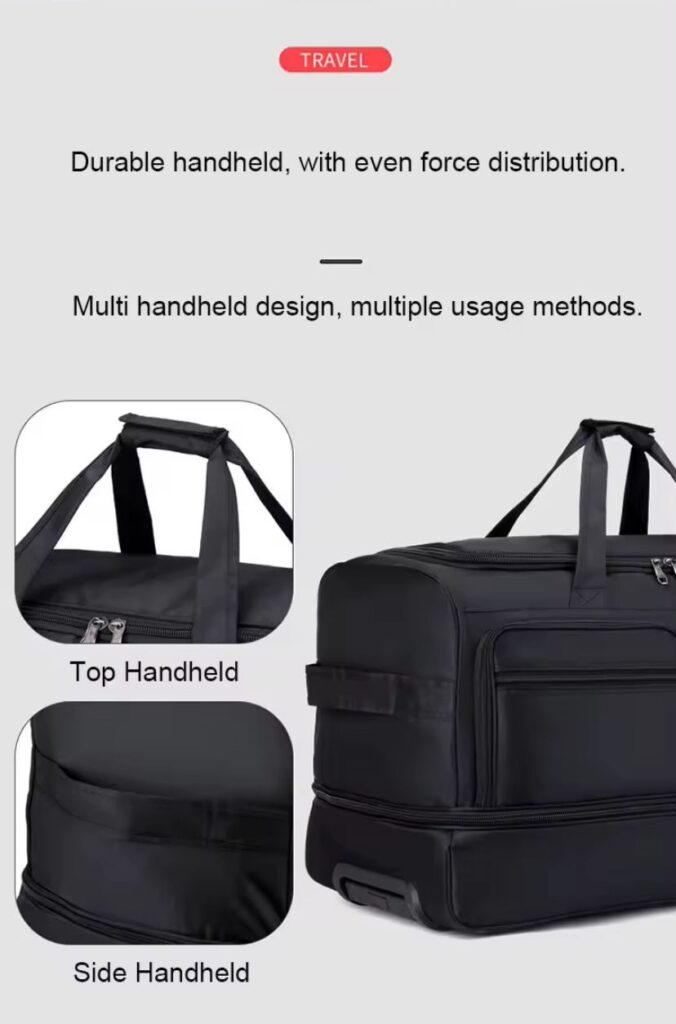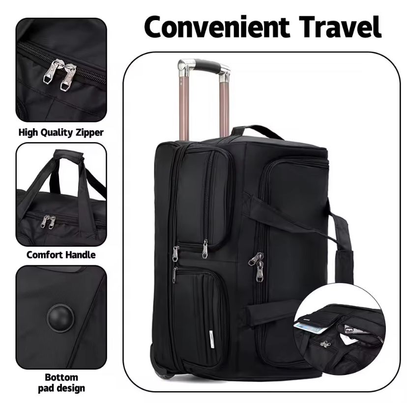 Built with premium water-resistant Oxford fabric, reinforced wheel and expandable storage, this bag is engineered to handle heavy packing while staying lightweight and easy to move.